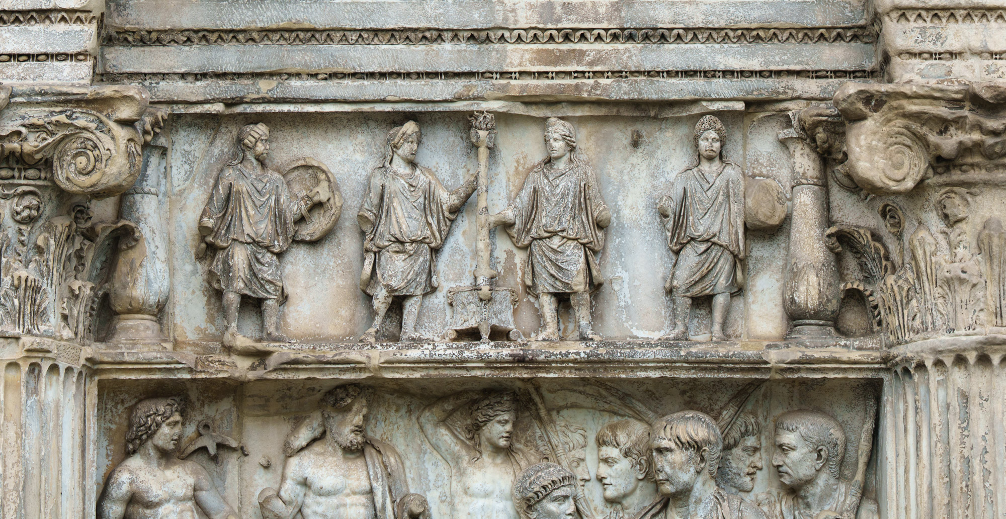 35608 Trajansbogen von Benevent: Vier Friese auf Höhe der Kapitelle