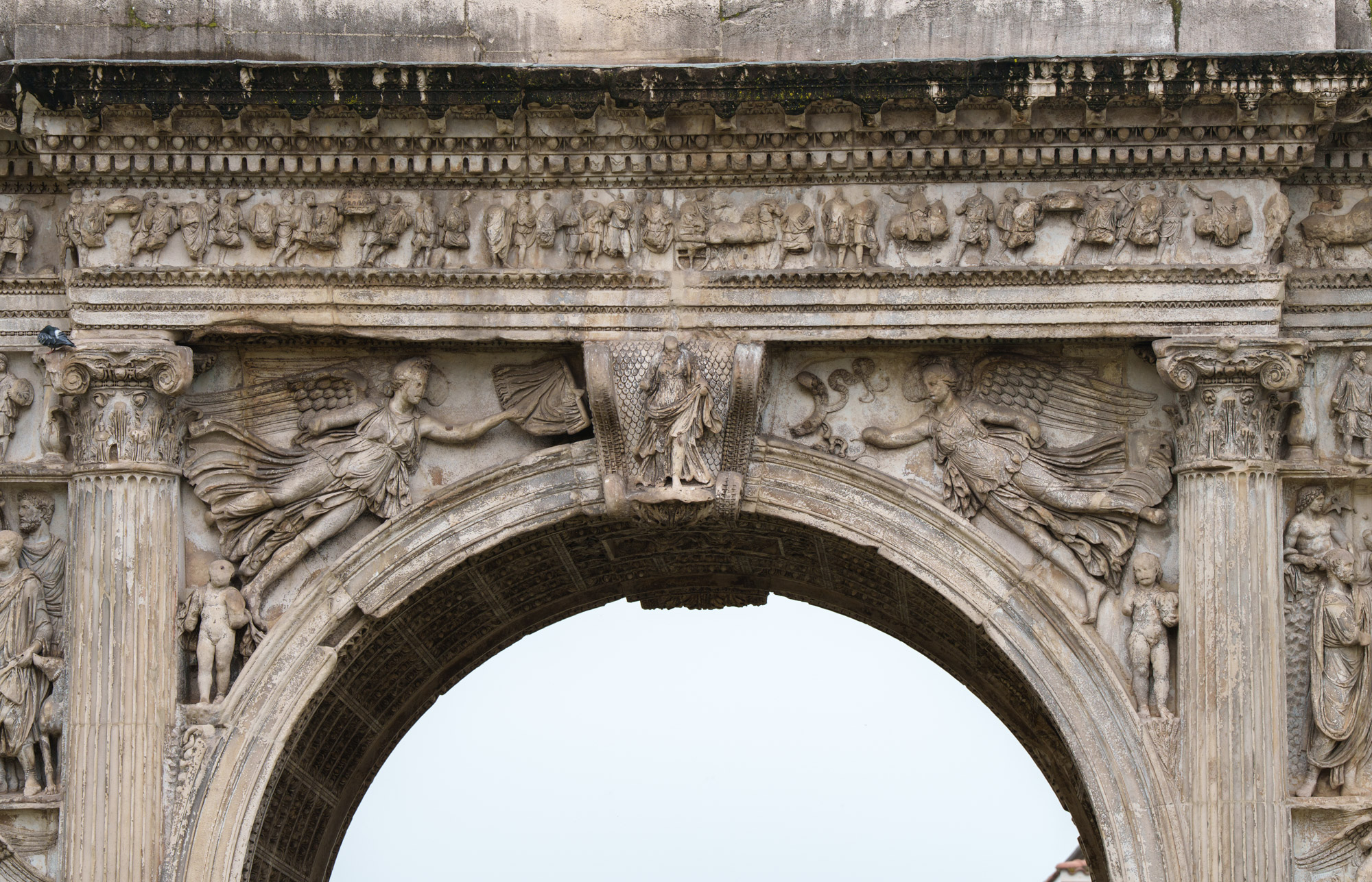 35609 Trajansbogen von Benevent: Zwickelreliefs über dem Durchgang (Stadtseite)