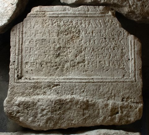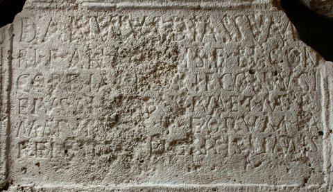- Danuius Diassuma/ri f(ilius) an(norum) LXXX h(ic) s(itus) e(st) et Con/cordiae Flori f(iliae) coniugi / eius an(norum) LXXX vivae t(itulum) m(emoriae) p(osuit) / Maturus f(ilius) eorum pa/rentibus pientissimis