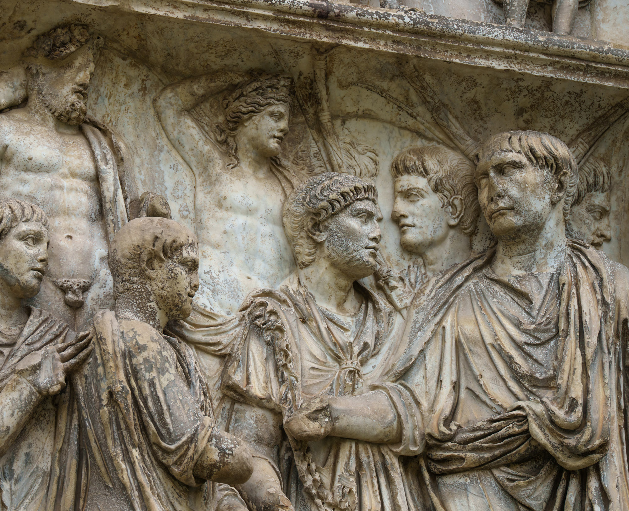 35615 Trajansbogen von Benevent: Bürger einer Stadt vor dem Kaiser (Stadtseite rechts oben)
