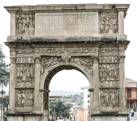 - K. Fittschen, Das Bildprogramm des Trajansbogens zu Benevent, Archäologischer Anzeiger 1972, 742–788; E. Simon, Die Götter am Trajansbogen zu Benevent (Trierer Winckelmannsprogramm 1–2). Zabern, Mainz 1981