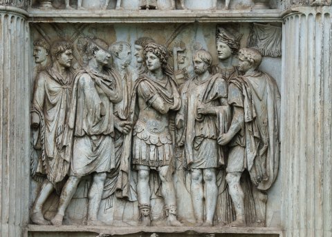 35618 Trajansbogen von Benevent: Musterung eines Rekruten (Landseite links oben)