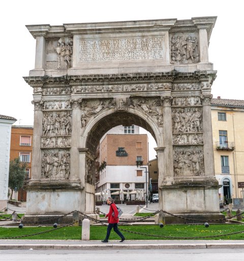- K. Fittschen, Das Bildprogramm des Trajansbogens zu Benevent, Archäologischer Anzeiger 1972, 742–788; E. Simon, Die Götter am Trajansbogen zu Benevent (Trierer Winckelmannsprogramm 1–2). Zabern, Mainz 1981
