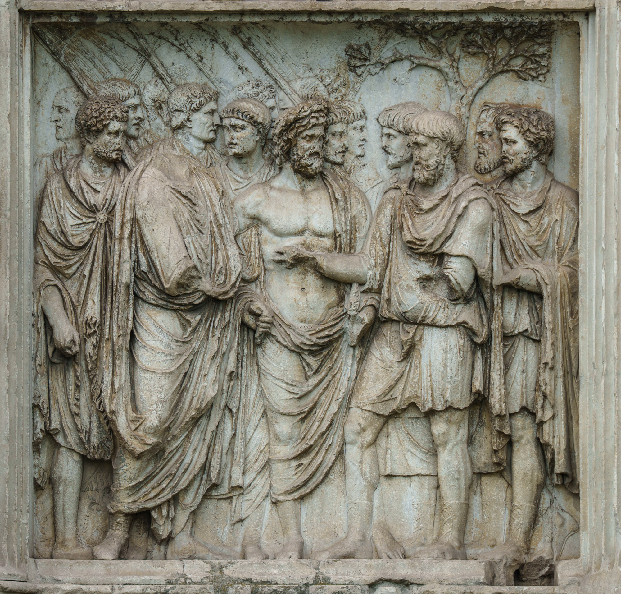 35619 Trajansbogen von Benevent: Vertragsschluss mit Barbaren (Landseite links unten)