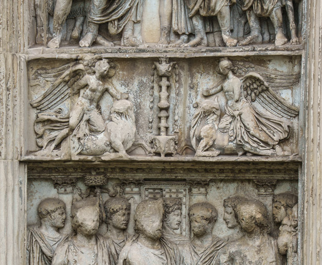 35622 Trajansbogen von Benevent: Vier Zwischenbilder mit Victorien beim Stieropfer