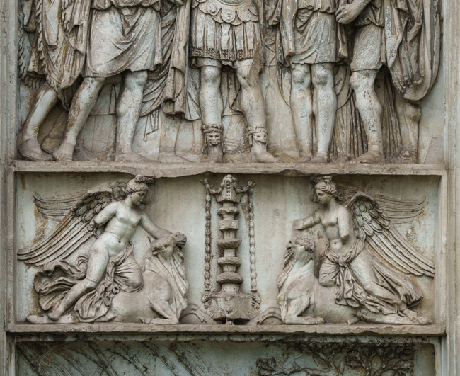 35622 Trajansbogen von Benevent: Vier Zwischenbilder mit Victorien beim Stieropfer