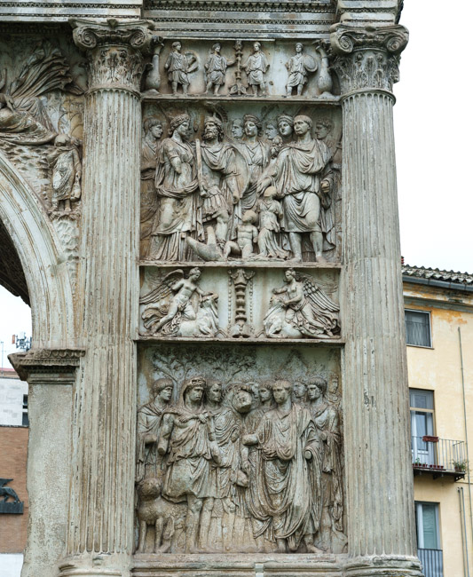 35622 Trajansbogen von Benevent: Vier Zwischenbilder mit Victorien beim Stieropfer