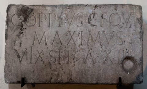 - C(aius) Oppius C(ai) f(ilius) Qui(rina) / Maximus / vixsit a(nnos) XIII