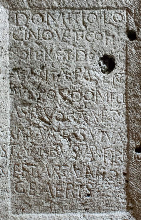 - D(is) M(anibus) / Domitio Lon/gino vet(erano) coh(ortis) / |(milliariae) Heme(senorum) (e)t Domit(i)/ae Avitae parenti/bus pos(uerunt) Domiti/as Revocata et / Amata [fi]lias (!) vivae in/stantibus A(u)r(elio) Firmo / vet(erano) et Aur(elio) Aunio / ge<n=A>eris (generis)