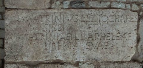 - L(ucius) Matrinius L(uci) l(ibertus) Diochares / sib{e}i et / Matriniae L(uci) l(ibertae) Apheleae / libertae suae
