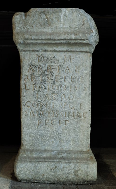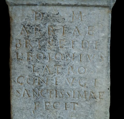 - D(is) M(anibus) / Arriae / Briseidi / L(ucius) Boionius / Latro / coniugi / sanctissimae / fecit
