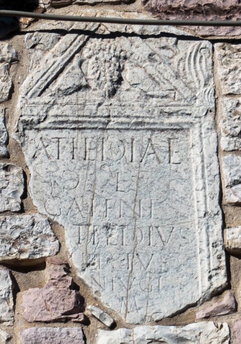 - Atiediae / |(mulieris) l(ibertae) / Galene / Atiedius / [Ch]restus / [co]niugi / [b(ene)] m(erenti)