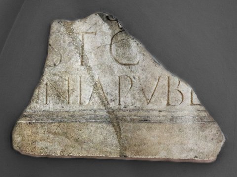 - ---]A[---] / [---st C[---] / [--- pecu]nia publ[ica ---] // [---]I[---] / [--- pop]ulusq[ue // ---]OS[ // ---]DI[---] / [---]MV[---
