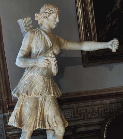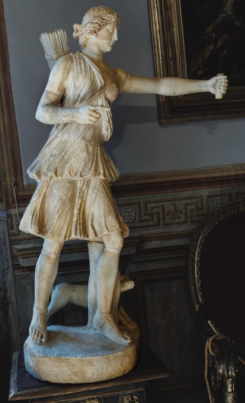 - Mythische Figur: Bogenspannende Artemis - Diana, nach rechts bewegt, in kurzem Chiton mit Überschlag.