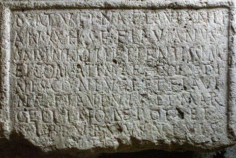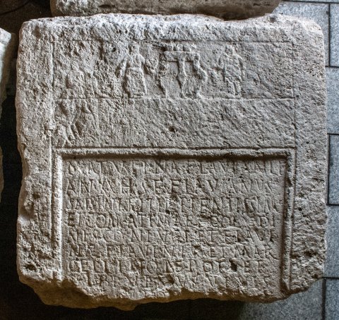 - Matutina Flaviani f(ilia) / an(norum) XX h(ic) s(ita) e(st) Flavianus / Sabini (filius) filiae pientissimae / et Comatimar(a)e Colvedio/nis (filiae) coniugi et Flavi(a)/nae Flaviani f(iliae) et Marcelliano nepoti et / sibi vivus vivis / posu(it)