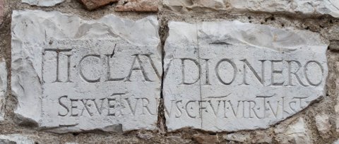 - Ti(berio) Claudio Neron[e II Cn(aeo) Calpurnio Pisone co(n)s(ulibus)] / Sex(tus) Veturius C(ai) f(ilius) VIvir T(itus) Visti[nius Vitor ---