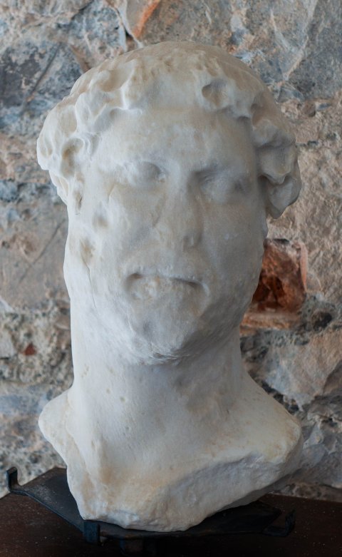 - Historische Person: Porträt des Kaisers Hadrian. Zugeschnittener Ansatz zum Einsetzen in Büste oder Statue.