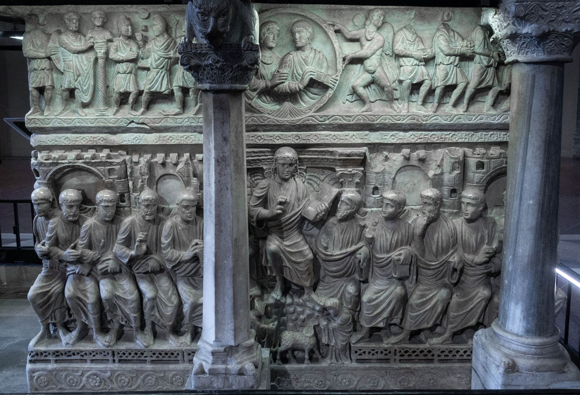 Bilder sind gegen den Uhrzeigersinn um den Sarkophag aufgenommen.