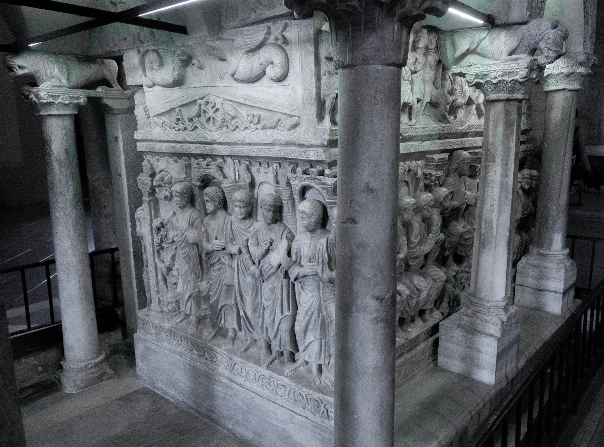Bilder sind gegen den Uhrzeigersinn um den Sarkophag aufgenommen.