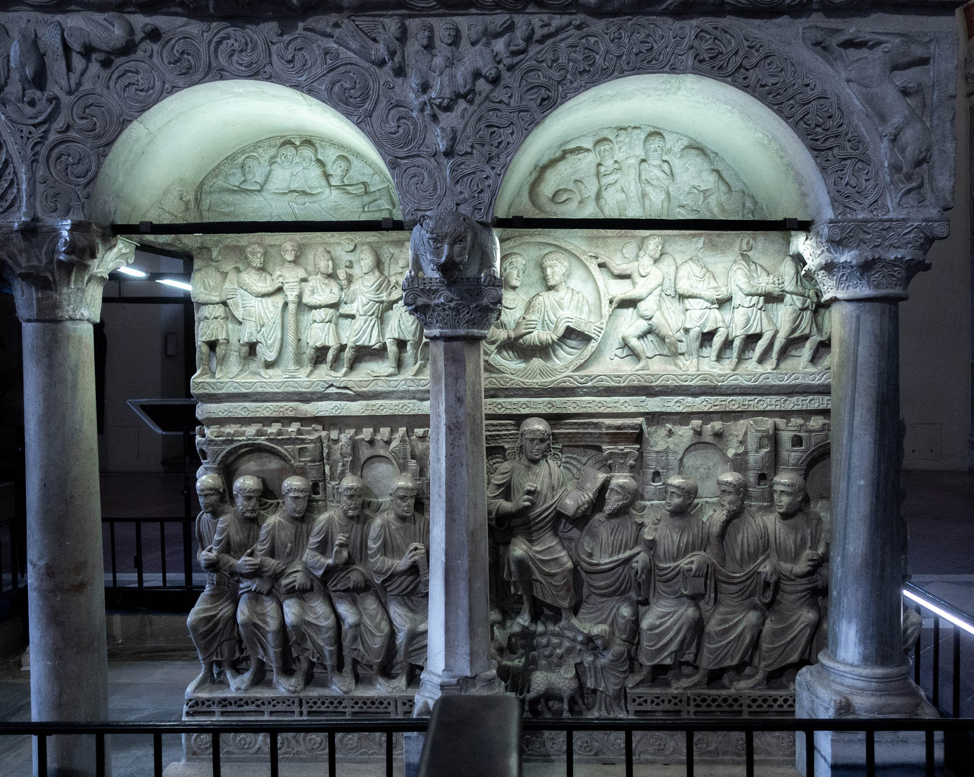 Bilder sind gegen den Uhrzeigersinn um den Sarkophag aufgenommen.