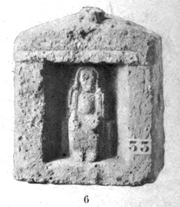 35797 Votivaedicula mit sitzender weiblicher Figur