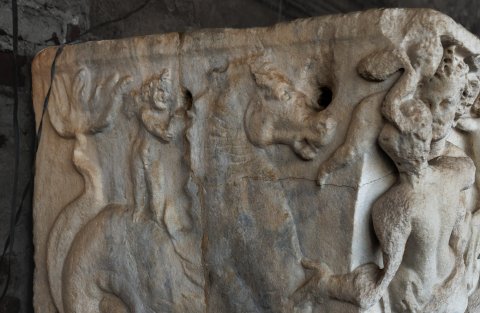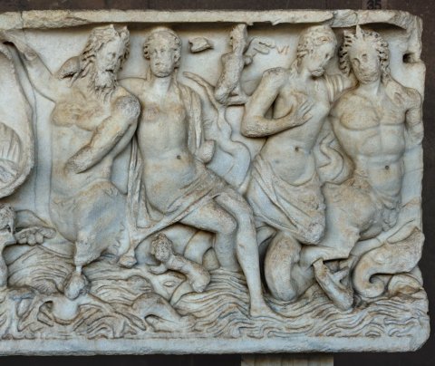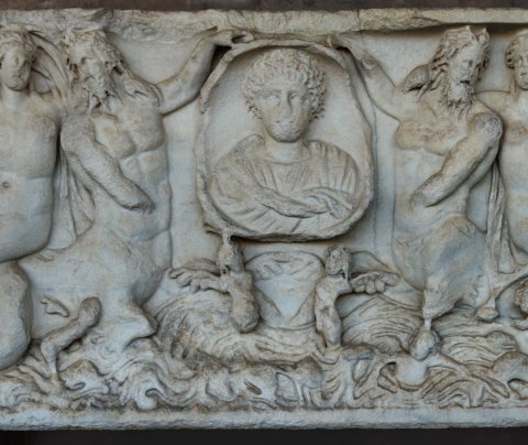 35801 Meerwesensarkophag mit Porträtmedaillon