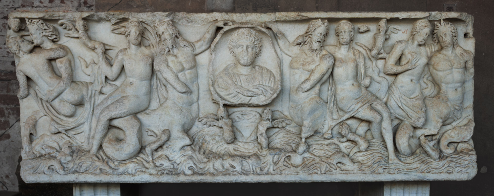 35801 Meerwesensarkophag mit Porträtmedaillon