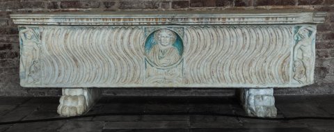 35825 Riefelsarkophag mit mittelalterlichem Porträt