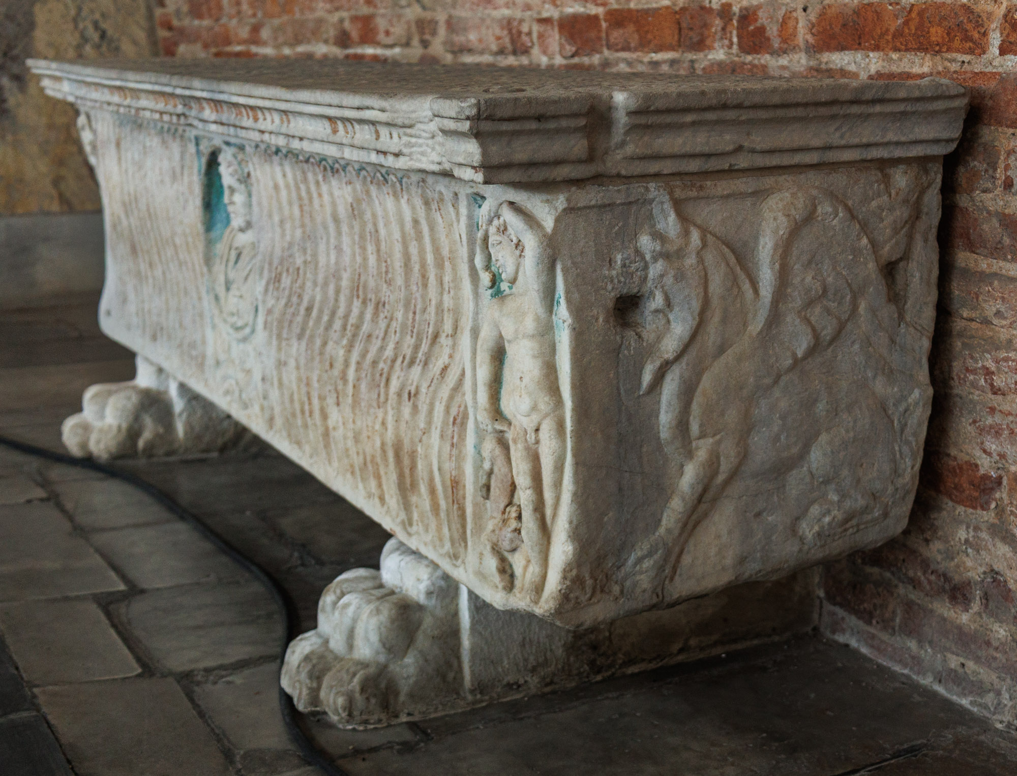 35825 Riefelsarkophag mit mittelalterlichem Porträt