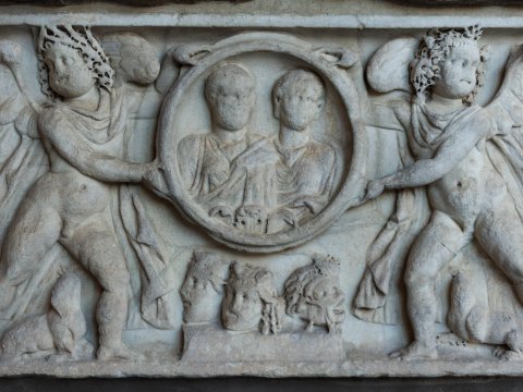 35843 Sarkophag mit Porträtbüsten eines Ehepaares