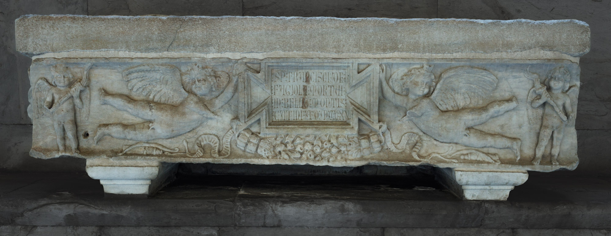 35844 Sarkophag tabula ansata und Eroten