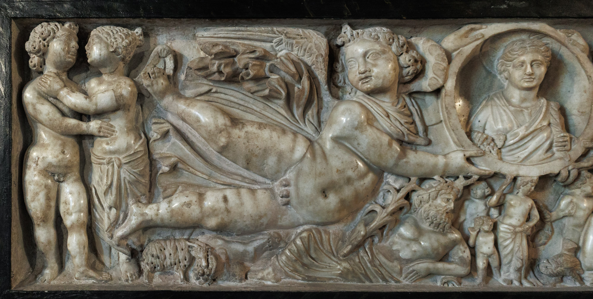 35893 Sarkophag mit Porträtmedaillon einer Frau