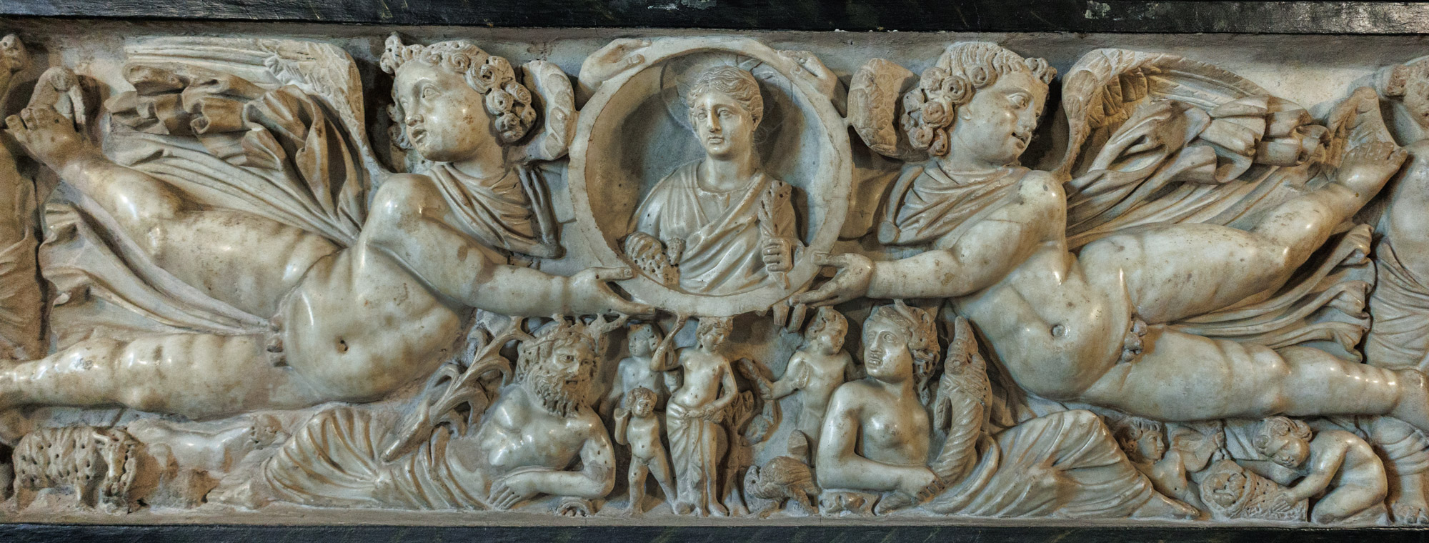 35893 Sarkophag mit Porträtmedaillon einer Frau