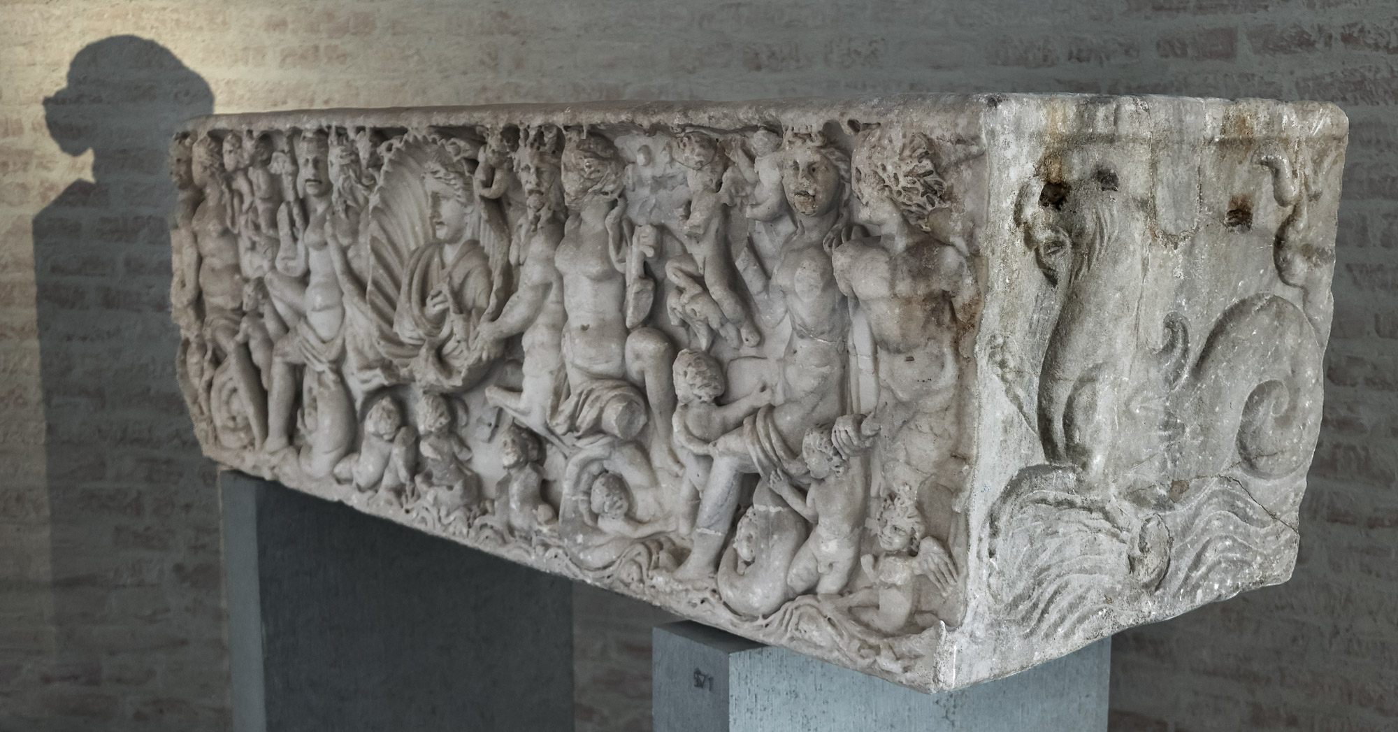 35906 Meerwesensarkophag mit Porträtmedaillon