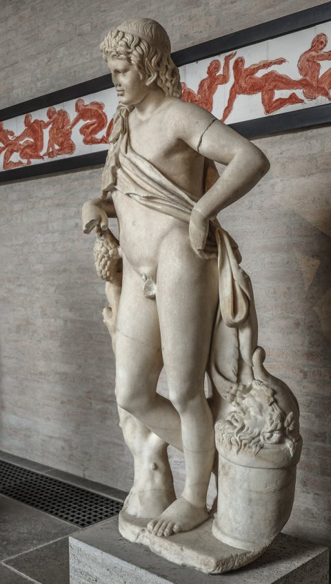 - mythische Figur: angelehnter jugendlicher Satyr; römische Kopie nach Original des Praxiteles, um 330 v. Chr.