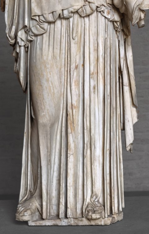 - Mythische Figuren: Göttin Eirene in Peplos und über den Rücken fallendem Mantel trägt auf dem linken Arm den kindlichen Plutos; römische Kopie nach Original des Kephisodot, um 375/70 v. Chr.
