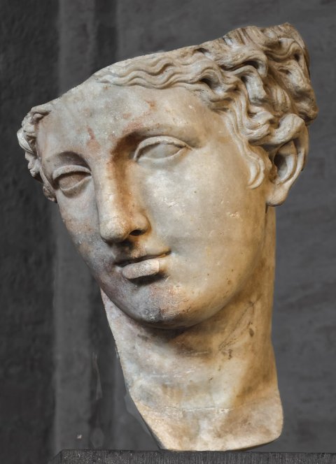 - Mythische Figur: zur rechten Schulter geneigter Kopf einer jugendlichen Göttin (Aphrodite ?); römische Kopie nach frühhellenistischem Original.