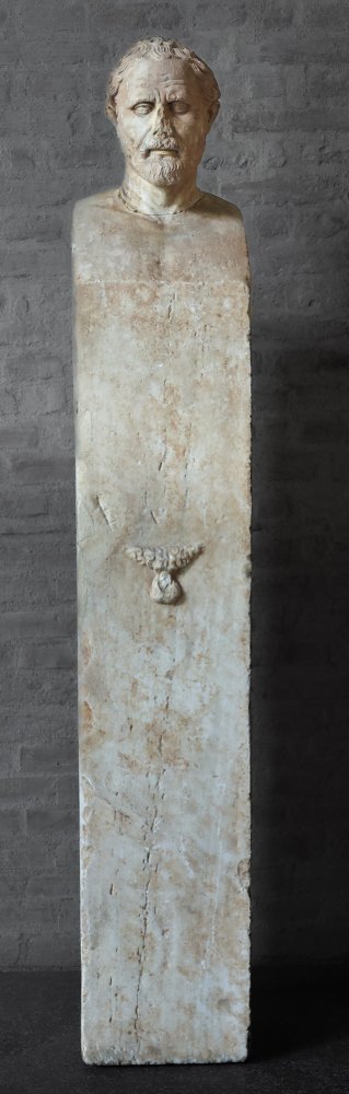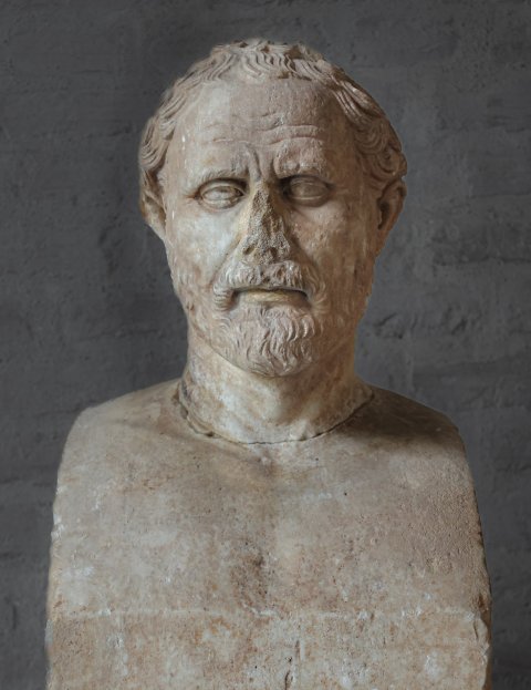 - Historische Person: Porträt des Demosthenes auf Hermenschaft mit Genitalien; römische Kopie des Kopfes einer Statue, die 280 v. Chr. in Athen aufgestellt wurde.