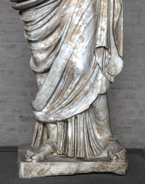 - Mythische Figur: Aphrodite, Typus Epidauros (Athen, Nat. Mus. 262), in Chiton und Mantel, mit entblößter rechter Brust; an Stelle des Schwertgurtes quer über die Brust gelegtes Ziegenfell. Römische Kopie nach Original des späten 5. Jhs. v. Chr.