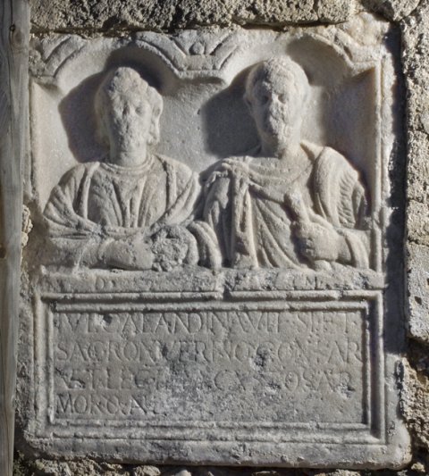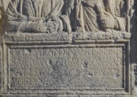- D(is) M(anibus) / Iul(ia) Calandina vi(va) f(ecit) si(bi) et / Sacron(io) Verino con(iugi) kar(issimo) / vet(erano) leg(ionis) II Ital(icae) custos ar/mor(um) ob(itus) an(norum) L