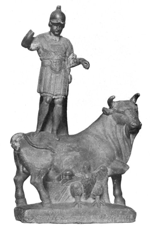 - Mythische Figur: rechteckige Plinthe, darauf stehender Stier und unter diesem sitzender Adler mit gespreizten Flügeln, auf dem Stier stehender Jupiter mit Brustpanzer, Offiziersbinde und Schwert mit Adlerknauf. Die Arme sind erhoben, die Attribute (Blitzbündel, Doppelaxt) fehlen.