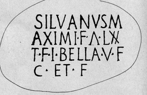 - Silvanus M/aximi f(ilius) a(nnorum) LXX / t(estamento) f(ieri) i(ussit) Bella v(iva) f(ecit) / c(oniugi) et f(ilio?)