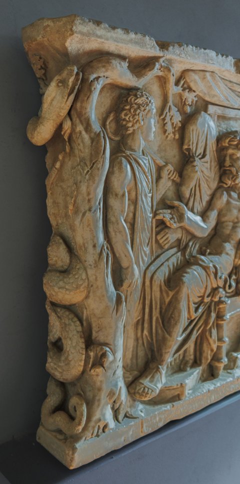 - Schmalseite eines Sarkophages