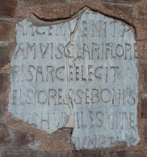 - ---]LL[---] / [---] arcem venit [---] / [--- qu]amvis clari flor[---] / [---]ris arce elegit [---] / [--- exc]elsior esse bonis [---] / [---] pius humiles(!) mites(!) [---] / [---]rumptus [---