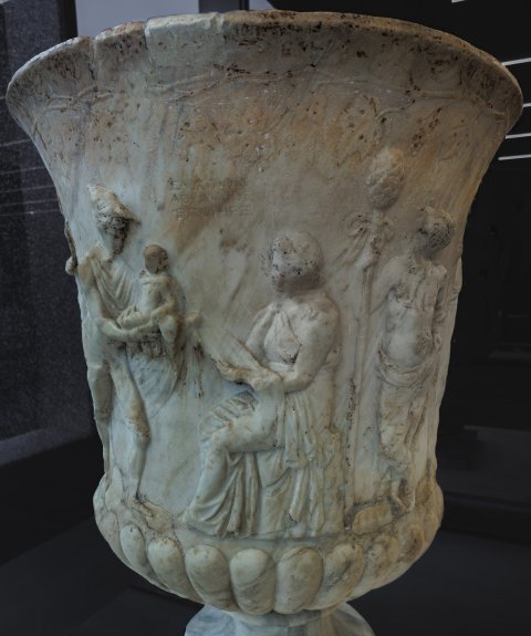- im Mittelalter in einer römischen Villa gefunden, dann in Gaeta als Poller zum Anhängen von Fischerbooten, später in der Kathdrale als Taufbecken; seit 1805 im Museum