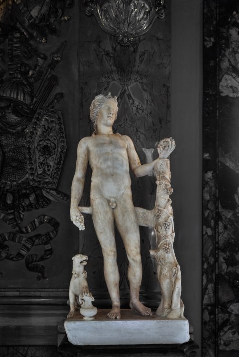 - Mythische Figur: stehender nackter Dionysos, neben dem rechten Bein hockender Panther.