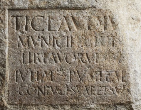 - Ti(berius) Claudiu[s] / municipii Celeia[e] / lib(ertus) Favor v(ivus) f(ecit) sibi et / Iuliae Pusillae / coniugi suae et suis