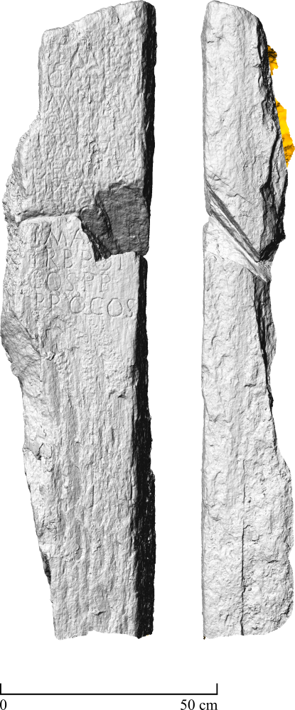- Imp(erator) / Caes(ar) C(aius) / Messiu / s Q(uintus) [Tr]o (!) / ianus / Deccius (!) / P(ius) F(elix) Inv[ict(us)] / Aug(ustus) [pon] / t(ifex) ma [x(imus)] / trib(unicia) pot(estate) / co(n)s(us) p(ater) p(atriae) / proco(n)s(ul)