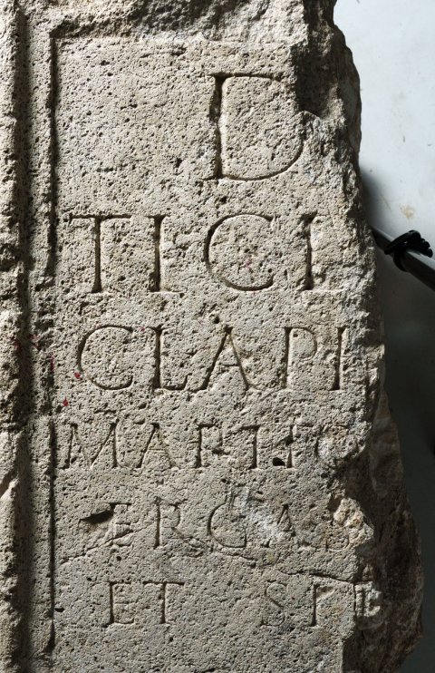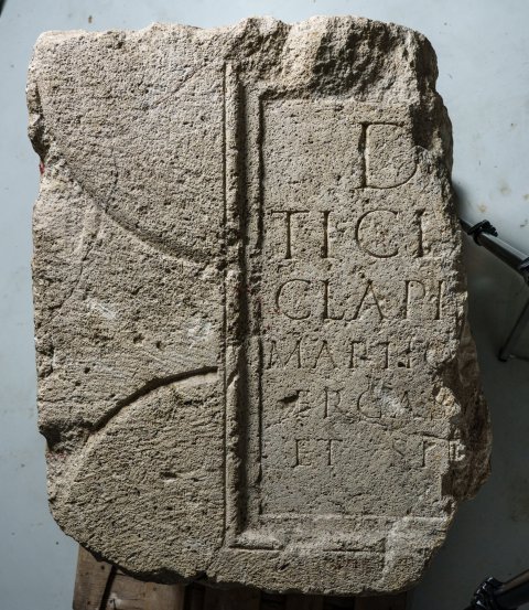 D(is) [M(anibus)] / Ti(berio) Cl[audio(?) ---] / Cl(audia) Api---] /