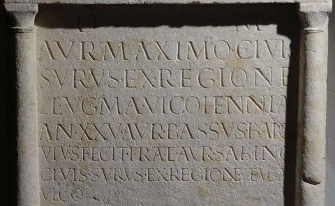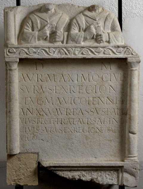 - D(is) M(anibus) / Aur(elio) Maximo civis / Surus ex regione / Zeugma vico Hennia / an(norum) XXV Aur(elius) Bassus Barath(a)e / vivus fecit frat(ri) et Aur(elio) Sabino / civis Surus ex regione Zeugma / vico